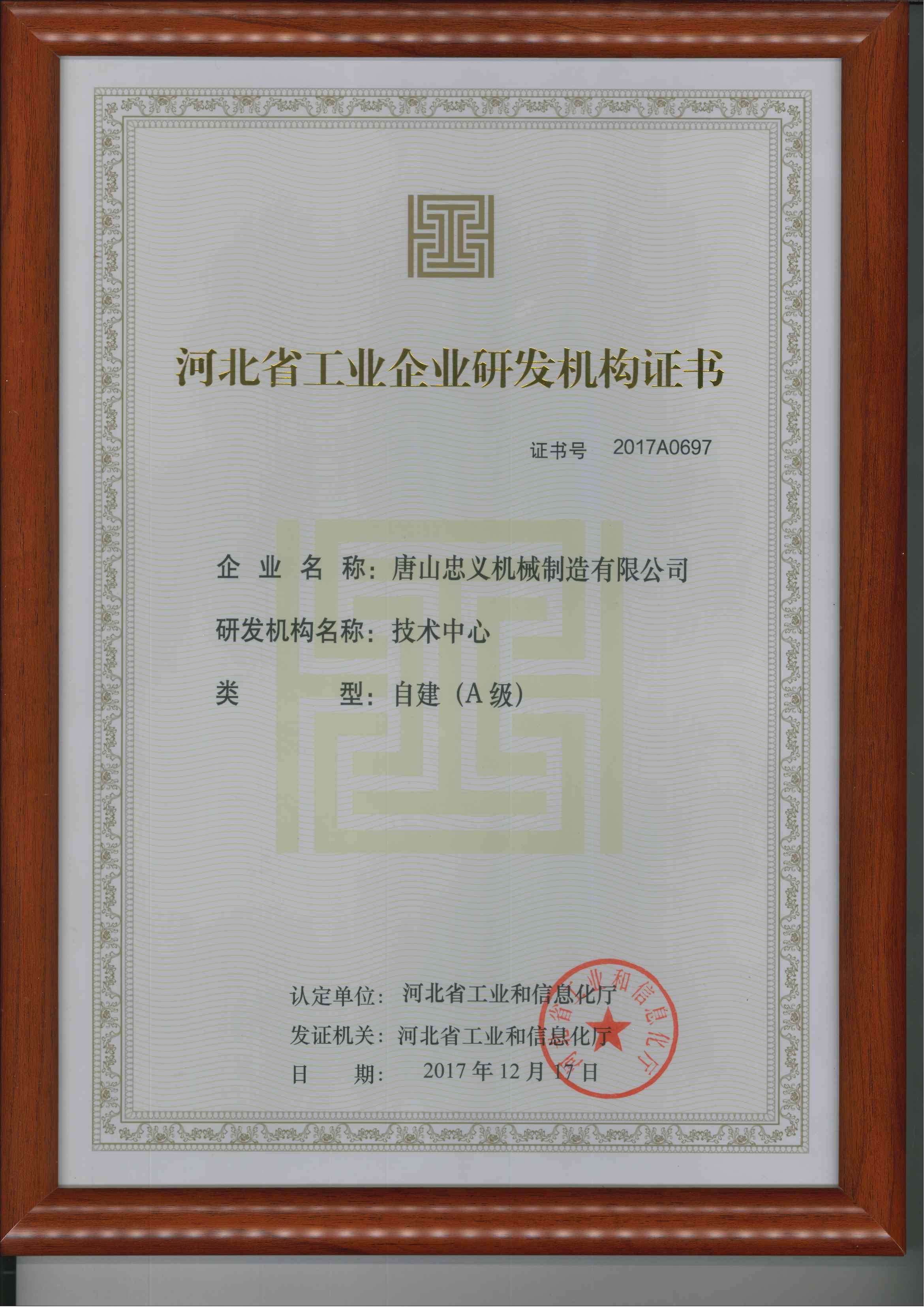 河北省工業(yè)企業(yè)研發(fā)機構證書彩色原版