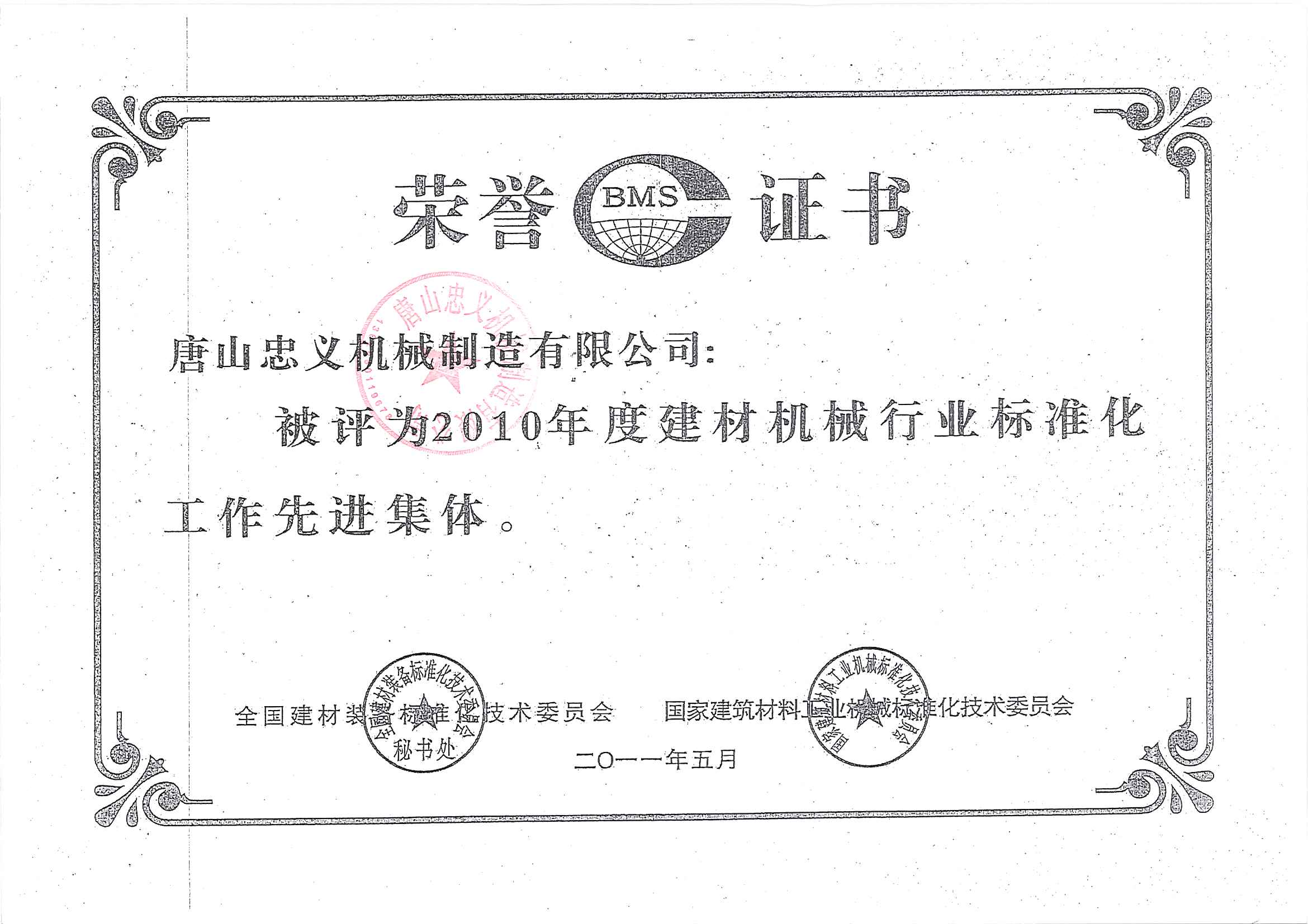 建材標(biāo)準(zhǔn)行業(yè)榮譽(yù)證書